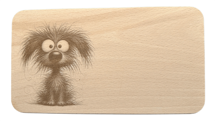 Dieses charmante Frühstücksbrettchen bringt gute Laune an den Tisch! Der zottelige, schielende Hund „Struppi“ wurde per Laser graviert und macht jedes Brett zu einem echten Hingucker.